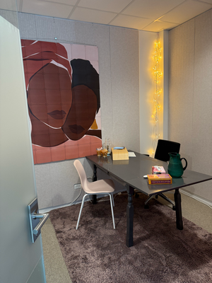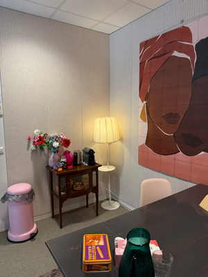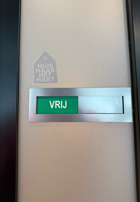 Ik werk in een verzamelgebouw boven cafe-restaurant Roos. Je kunt beneden plaatsnemen of boven bij de toiletten.
